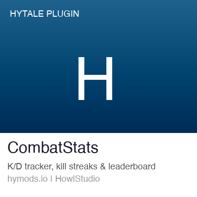 CombatStats records all PvP statistics and maintains a live leaderboard so players can compete for the top spot. First dedicated PvP stats plugin for Hytale.