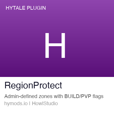 Admins create named regions and control what happens inside — no building, no PvP, safe zones, spawn areas, shops. Essential for structured servers.